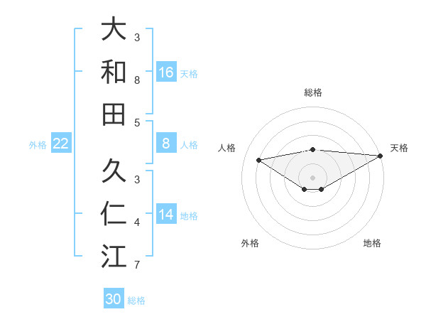 大和田 久仁江さんを姓名の画数から五運を鑑定
