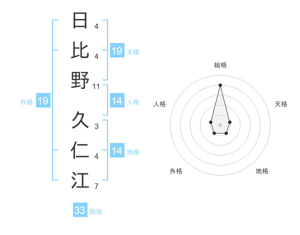 日比野 久仁江さんを姓名の画数から五運を鑑定