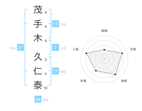 茂手木 久仁泰さんの天格は17画の4点!