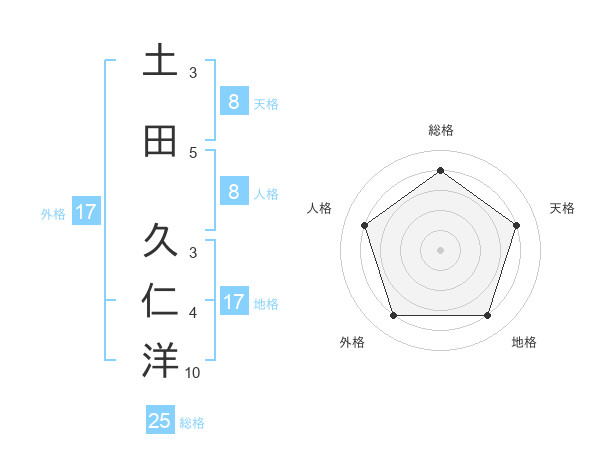 土田 久仁洋さんを姓名の画数から五運を鑑定