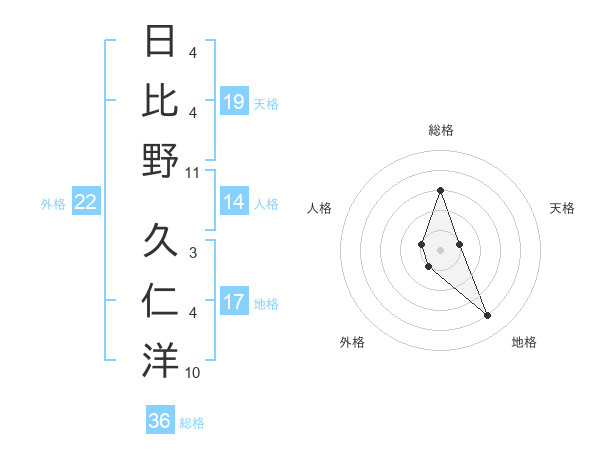 日比野 久仁洋さんを姓名の画数から五運を鑑定