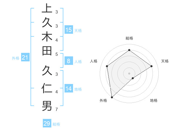 上久木田 久仁男さんを姓名の画数から五運を鑑定