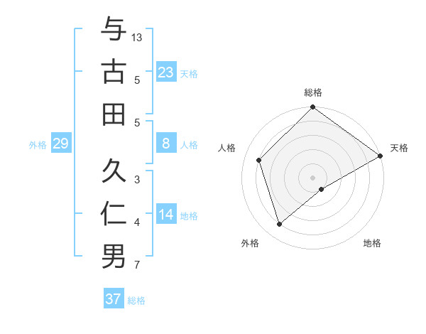 与古田 久仁男さんを姓名の画数から五運を鑑定