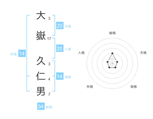 大嶽 久仁男さんを姓名の画数から五運を鑑定