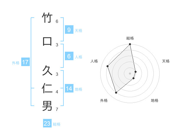竹口 久仁男さんの総格は23画の5点!