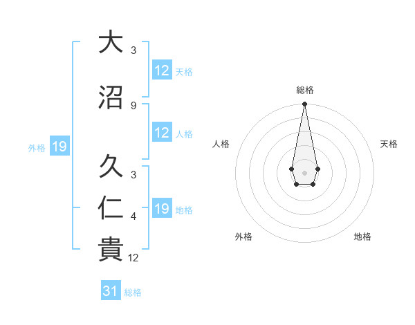 大沼 久仁貴さんの総格は31画の5点