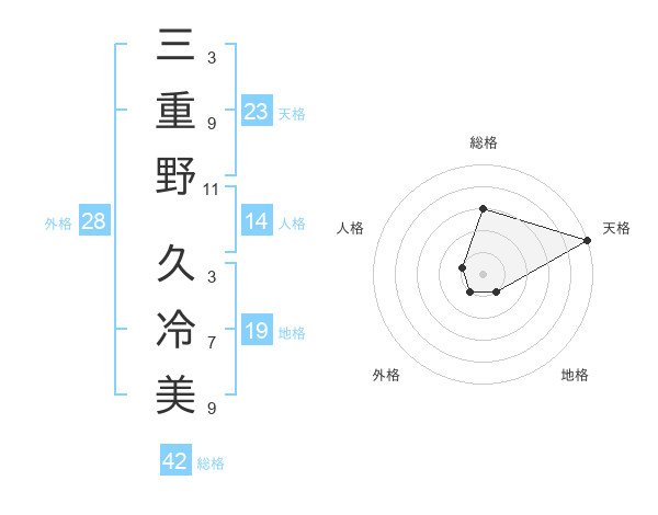 三重野 久冷美さんを姓名の画数から五運を鑑定