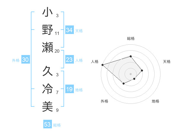 小野瀬 久冷美さんを姓名の画数から五運を鑑定
