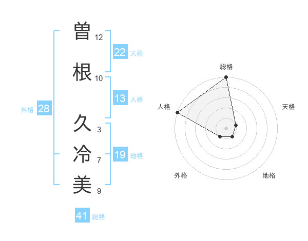 曽根 久冷美さんを姓名の画数から五運を鑑定