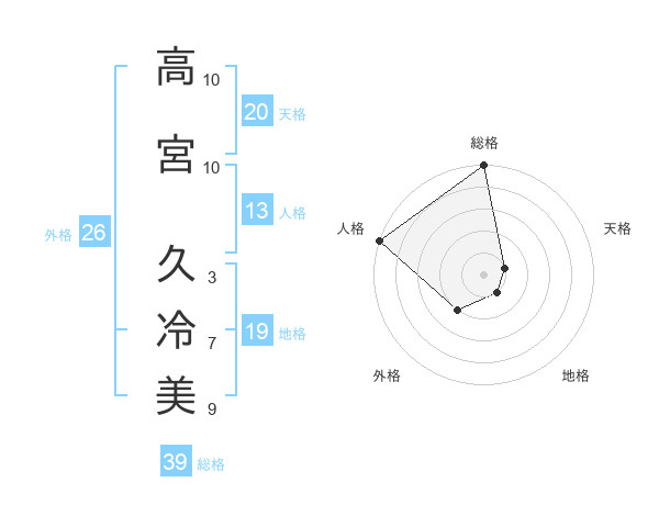 高宮 久冷美さんの総格は39画の5点