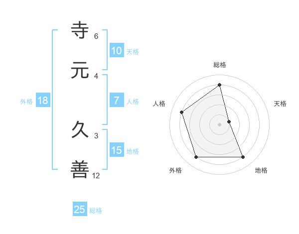 寺元 久善さんの総格は25画の4点!