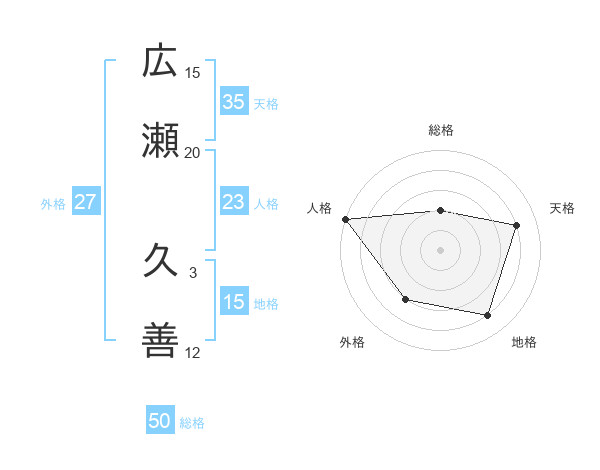 広瀬 久善さんを姓名の画数から五運を鑑定