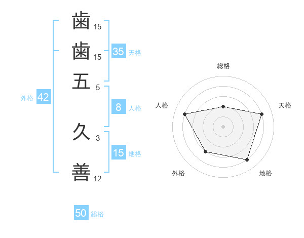 歯歯五 久善さんを姓名の画数から五運を鑑定