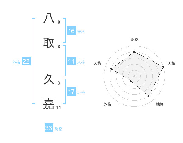 八取 久嘉さんを姓名の画数から五運を鑑定