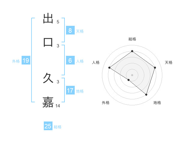 出口 久嘉さんの総格は25画の4点!