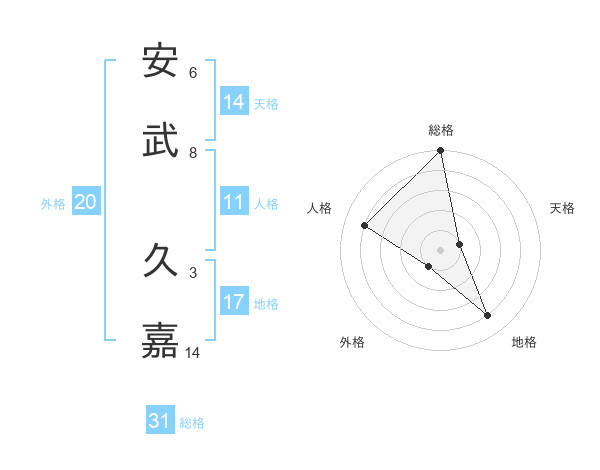 安武 久嘉さんを姓名の画数から五運を鑑定