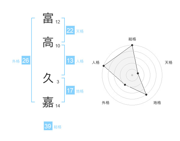 富高 久嘉さんを姓名の画数から五運を鑑定