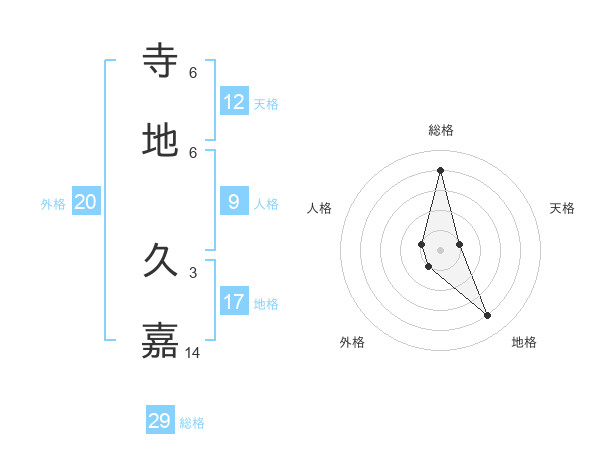 寺地 久嘉さんの総格は29画の4点!
