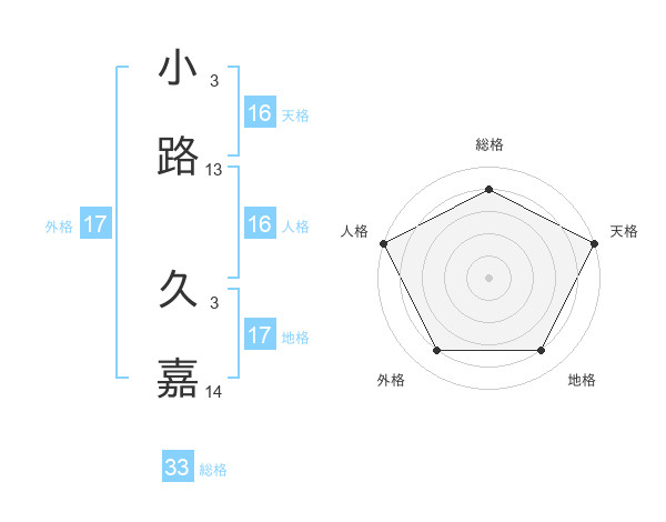 小路 久嘉さんの天格は16画の5点!