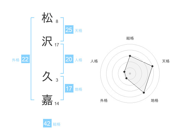 松沢 久嘉さんを姓名の画数から五運を鑑定