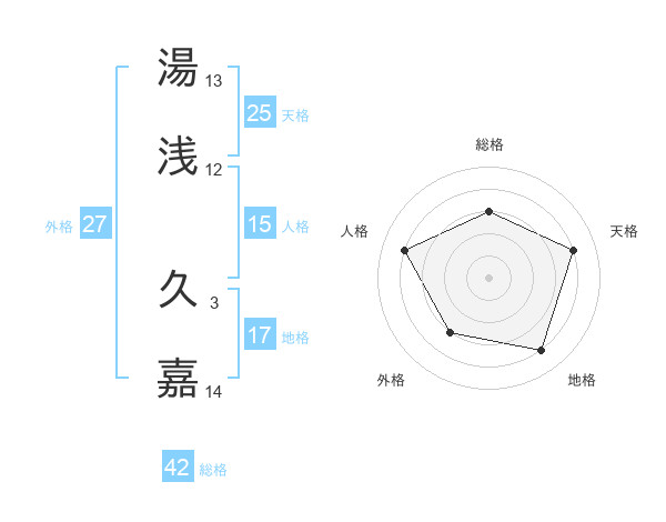 湯浅 久嘉さんを姓名の画数から五運を鑑定