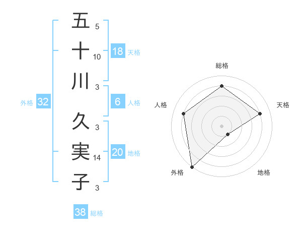 五十川 久実子さんの総格は38画の4点!