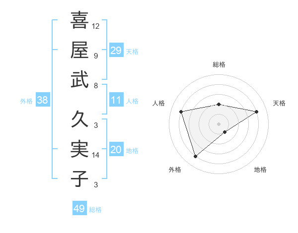占い結果は姓名判断である以上、良い場合も悪い場合もありますが、決してお名前を誹謗中傷するものでなく、画数の自動計算によって得られたものです。また、本サイトの検索によって得られた鑑定結果で、第三者を誹謗中傷したり名誉を棄損するような行為を禁じます。
