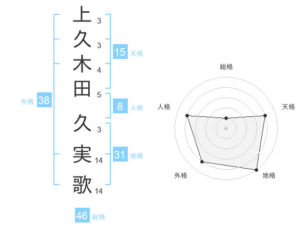 上久木田 久実歌さんを姓名の画数から五運を鑑定