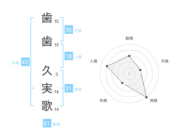歯歯 久実歌さんの総格は61画の3点!