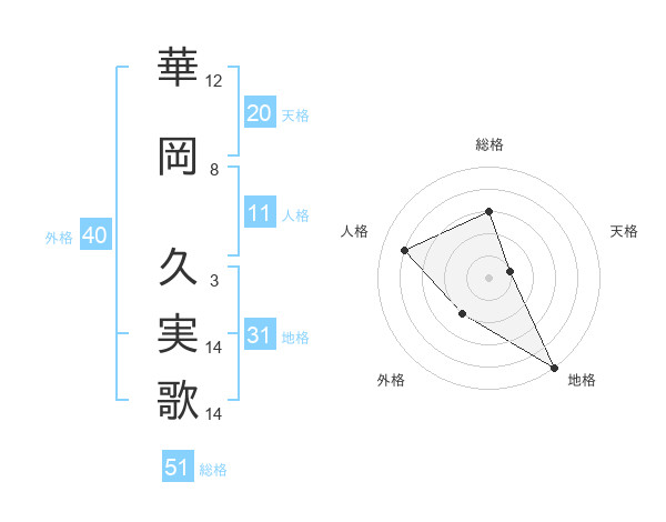 華岡 久実歌さんを姓名の画数から五運を鑑定