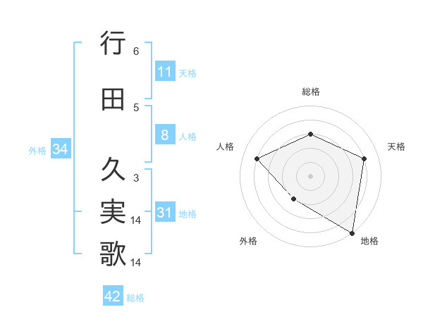 行田 久実歌さんを姓名の画数から五運を鑑定