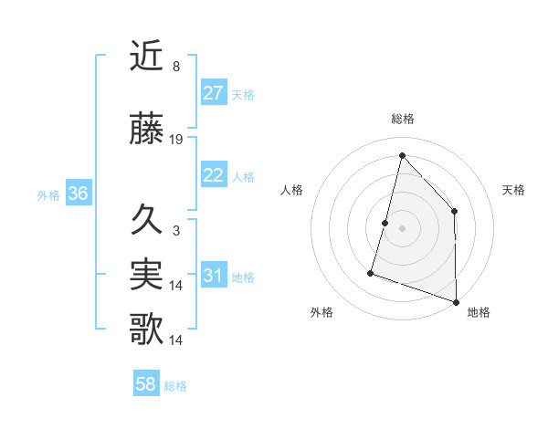 近藤 久実歌さんの総格は58画の4点!