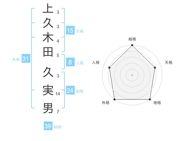 上久木田 久実男さんを姓名の画数から五運を鑑定