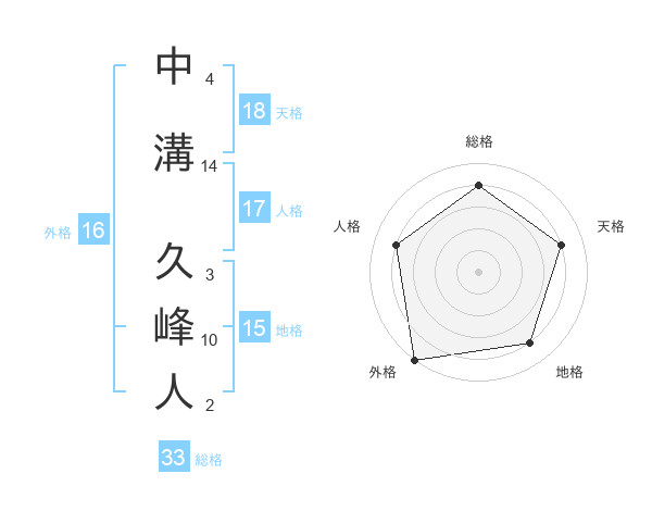 中溝 久峰人さんを姓名の画数から五運を鑑定