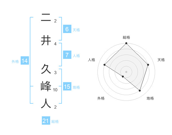 二井 久峰人さんの総格は21画の5点!