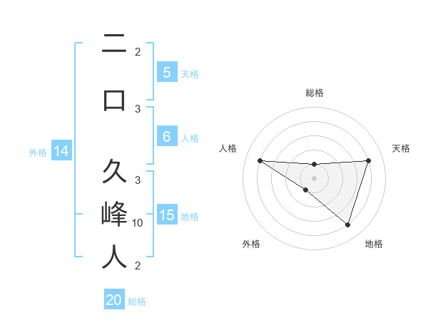 二口 久峰人さんを姓名の画数から五運を鑑定