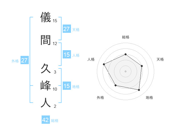 儀間 久峰人さんの総格は42画の3点!