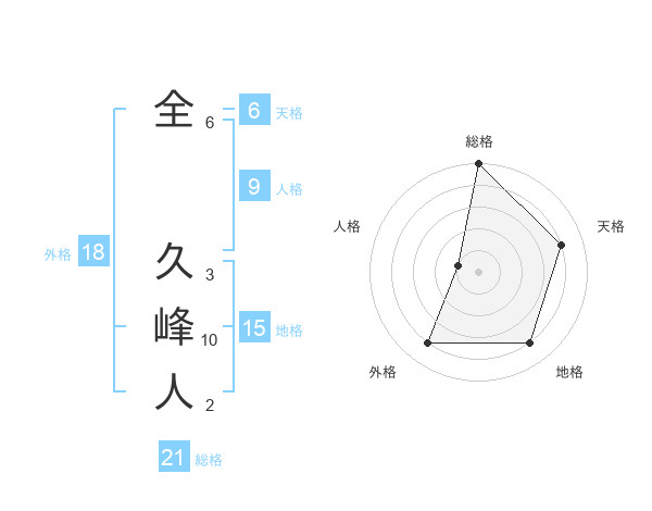 全 久峰人さんの総格は21画の5点!