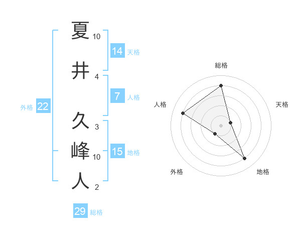夏井 久峰人さんを姓名の画数から五運を鑑定