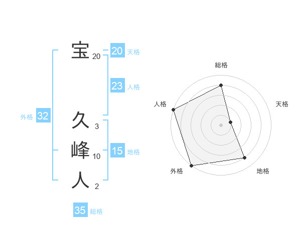 宝 久峰人さんの外格は32画の5点!