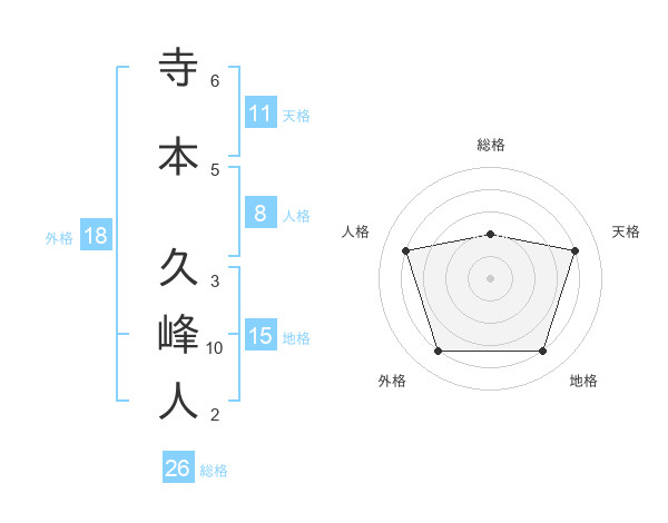 寺本 久峰人さんを姓名の画数から五運を鑑定