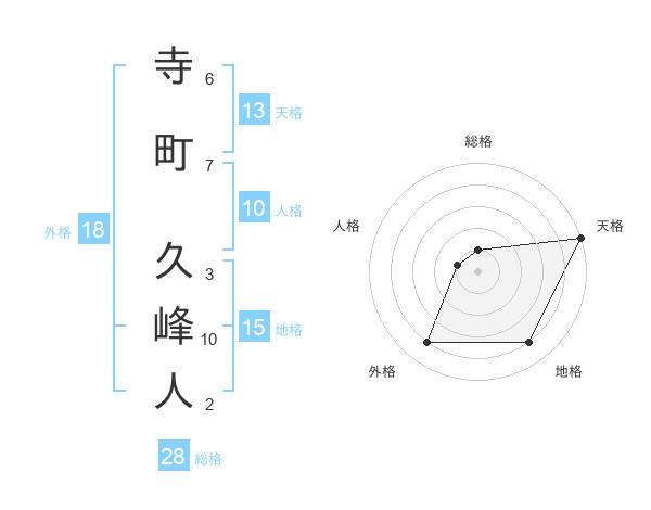 寺町 久峰人さんの天格は13画の5点!