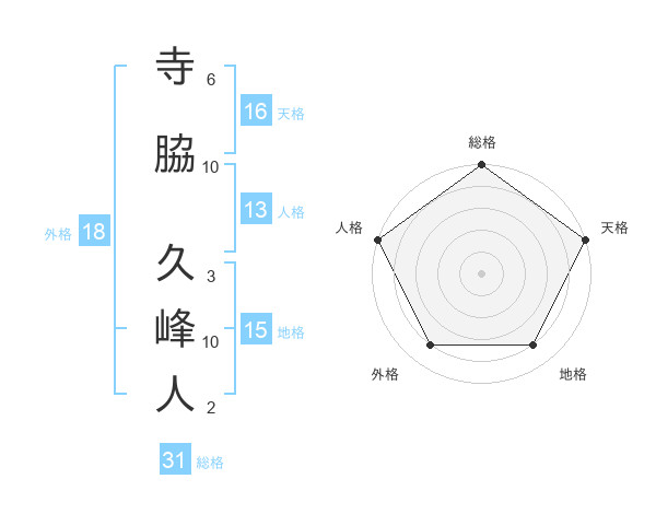 寺脇 久峰人さんの総格は31画の5点!