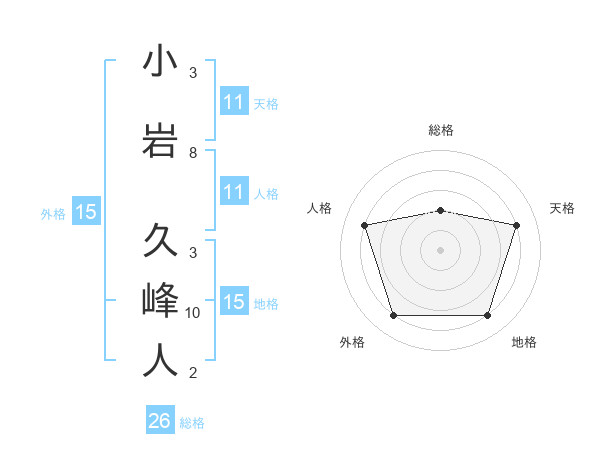 小岩 久峰人さんを姓名の画数から五運を鑑定