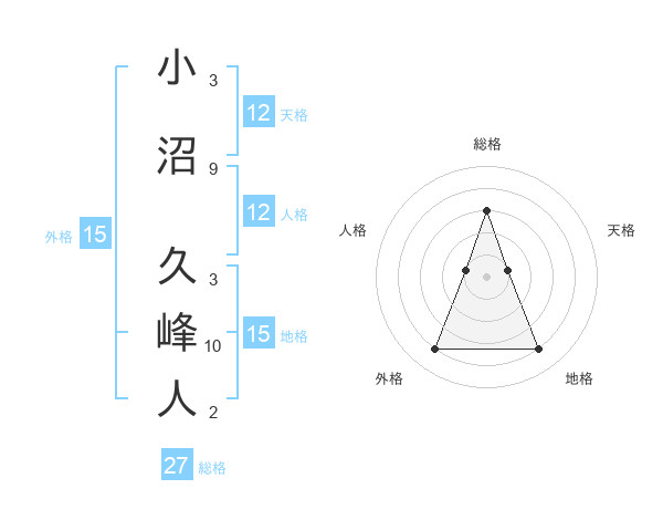 小沼 久峰人さんを姓名の画数から五運を鑑定