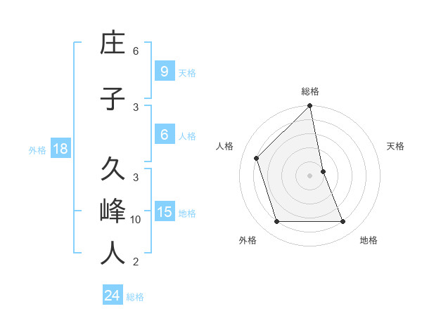 庄子 久峰人さんの総格は24画の5点!