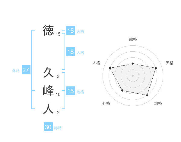 徳 久峰人さんの天格は15画の4点!