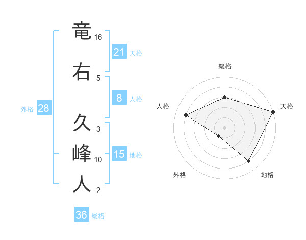 竜右 久峰人さんの天格は21画の5点!