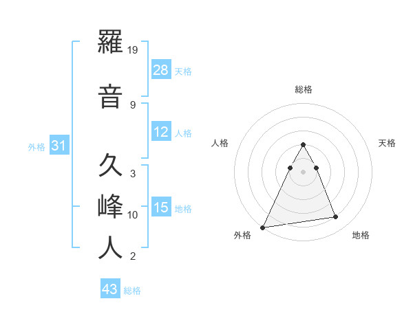 羅音 久峰人さんを姓名の画数から五運を鑑定
