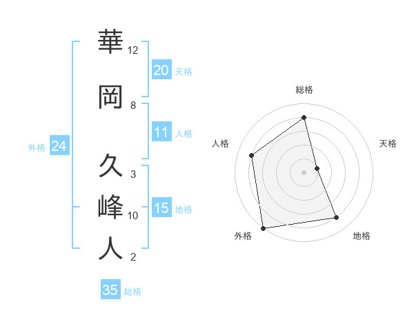 華岡 久峰人さんの総格は35画の4点!